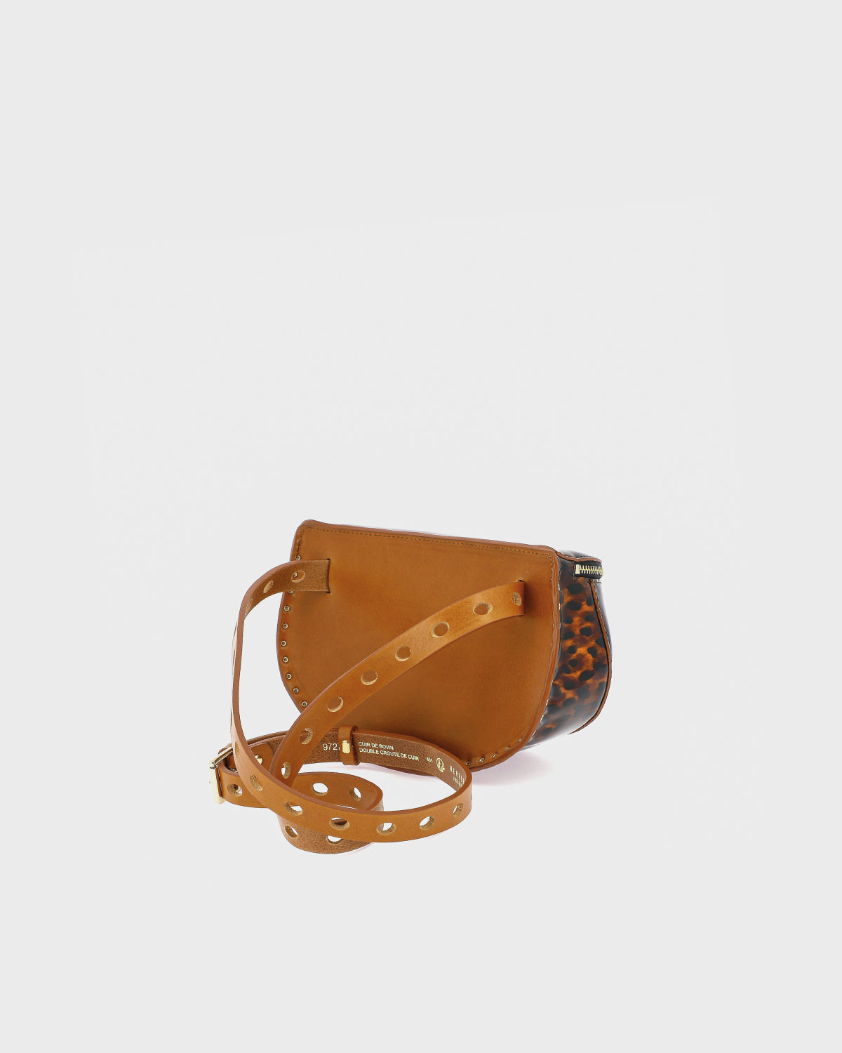 - Dos et anse ajustable de 120 cm en cuir de vachette pleine fleur Camel au tannage végétal