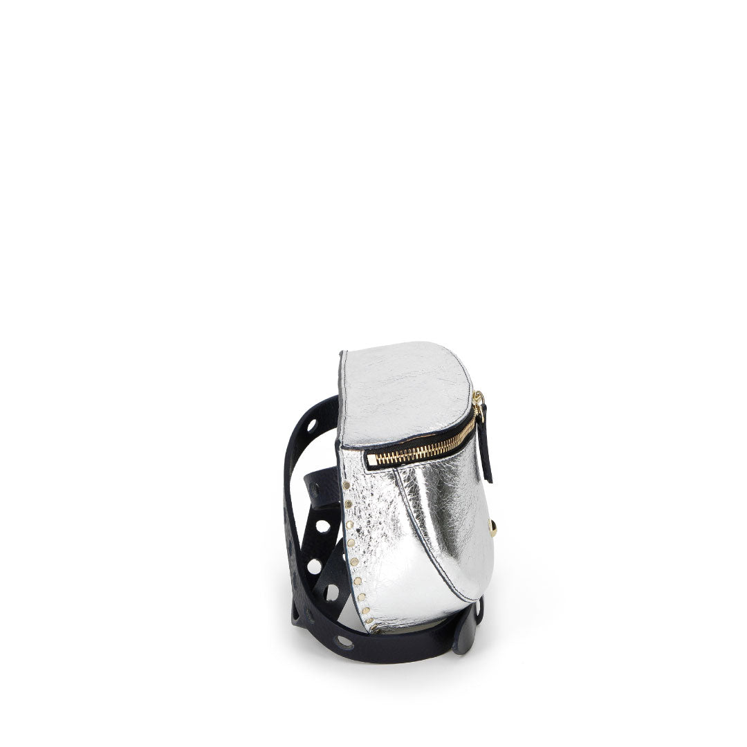 • Cuir de vachette irisé Laminato Argent doublé croûte de cuir permettant la bonne tenue de la matière sans pour autant apporter de rigidité