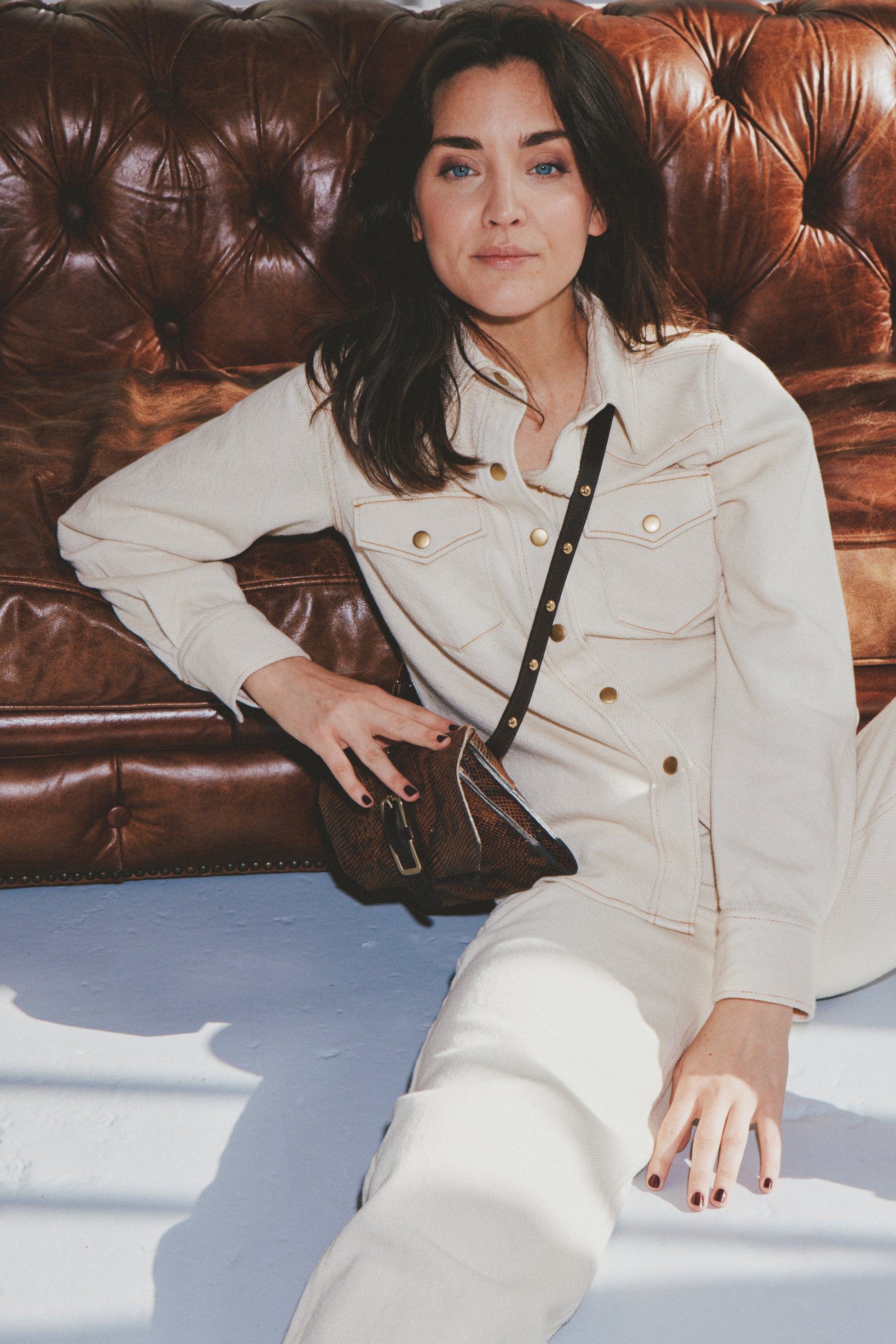 • Anse ajustable de 120 cm en cuir de vachette pleine fleur Choco au tannage végétal avec clous dorés sur toute la longueur