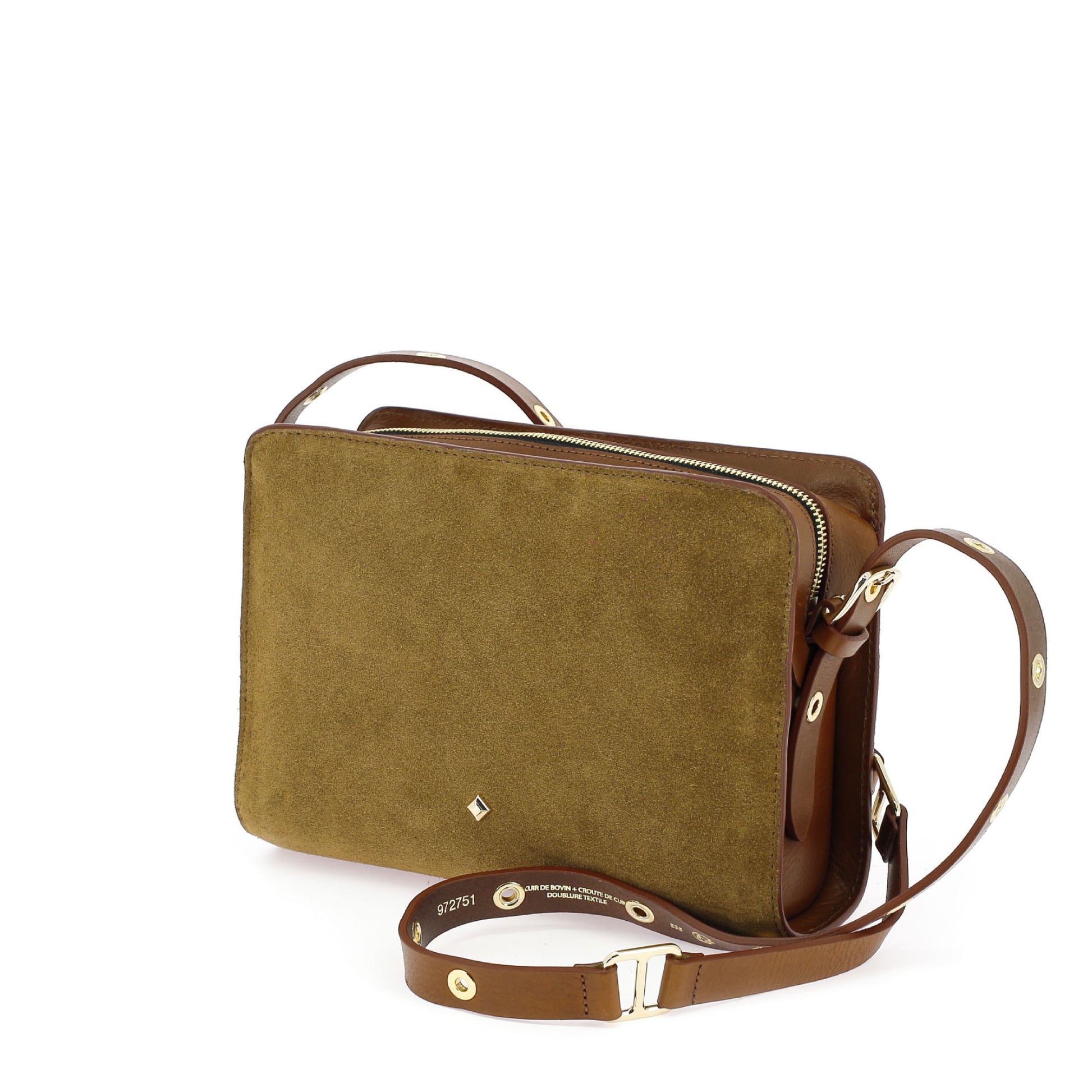• Croûte de cuir velours Tobacco et cuir de vachette pleine fleur Nutella au tannage végétal