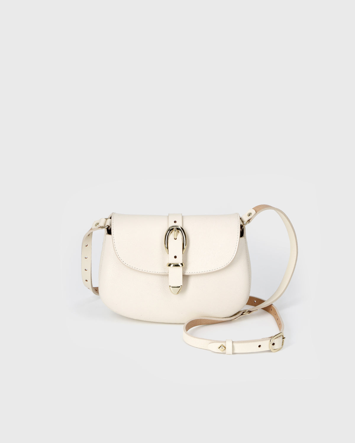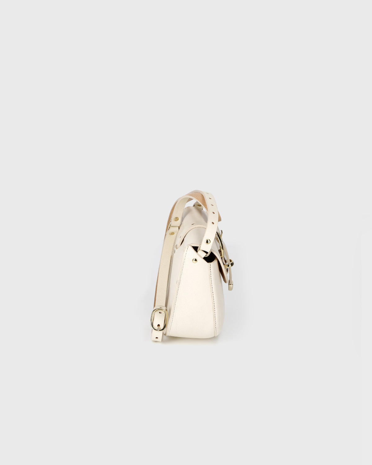 - Rabat avec bouton pression aimanté et patte de fermeture avec boucle et embout décoratifs en laiton