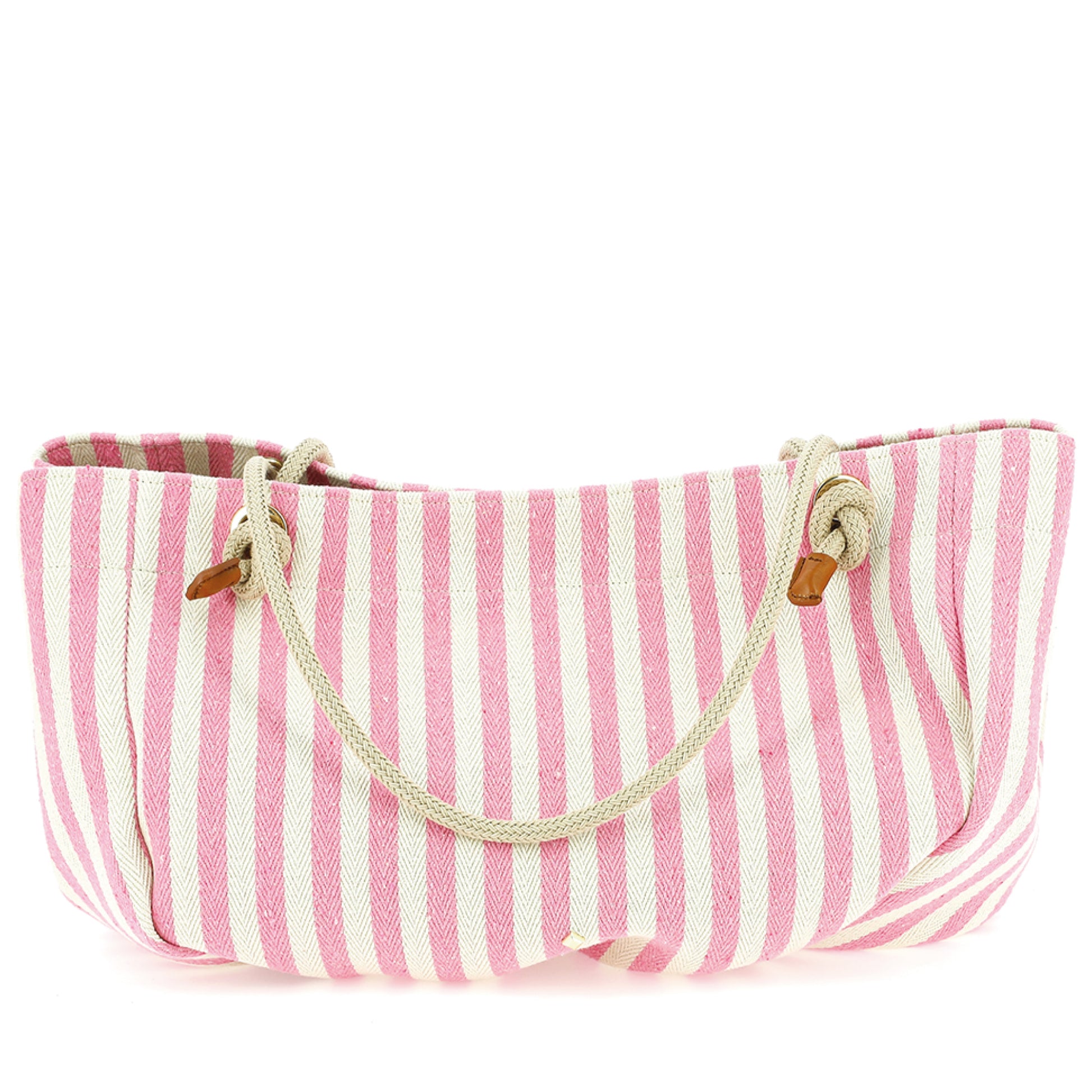 • Grand cabas boule souple et plissé en toile de coton marinière Rose et Crème