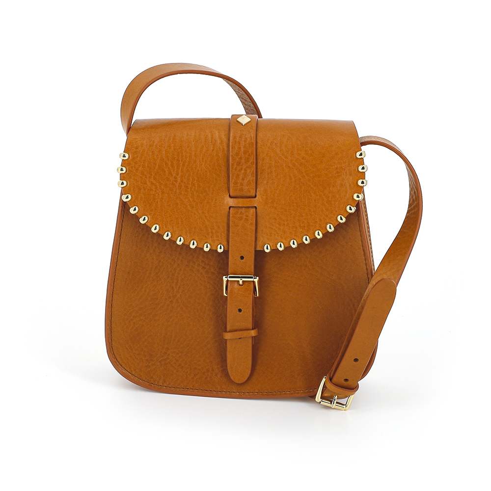 • Ornement de clous dorés sur le contour du rabat